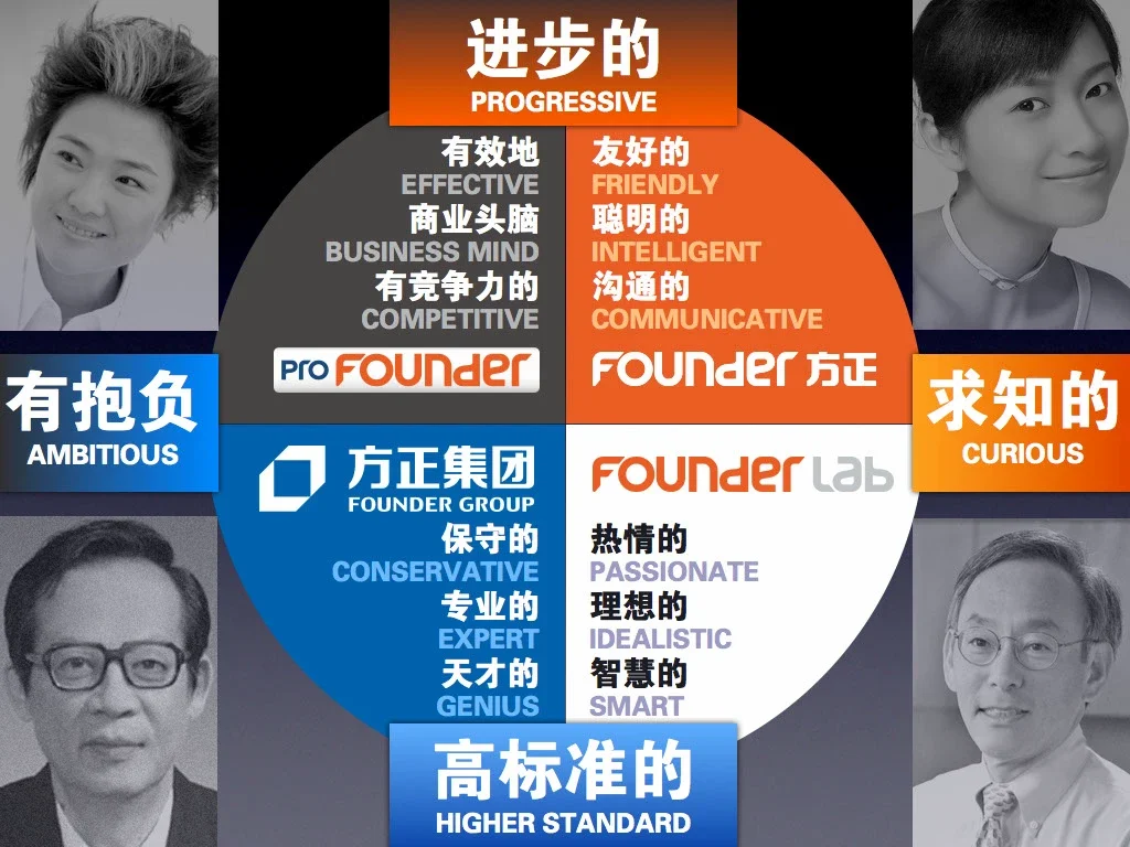 This is the very first major pitch I entered in China when I started working with Zheng Bang. Founder is a national IT group born from Peking University and the work of a computer scientist who had helped make Chinese digital typography possible on early personal computers. For that project, I developed several concepts, then refined two directions with Zheng Bang’s feedback: a teal version and an orange one. We finally chose the orange solution, with a more stable and familiar F, because the earlier version suggested an arrow falling downward.